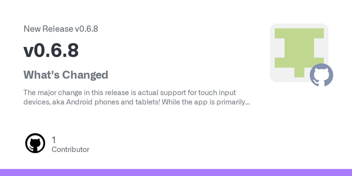 The major change in this release is actual support for touch input devices, aka Android phones & tablets!