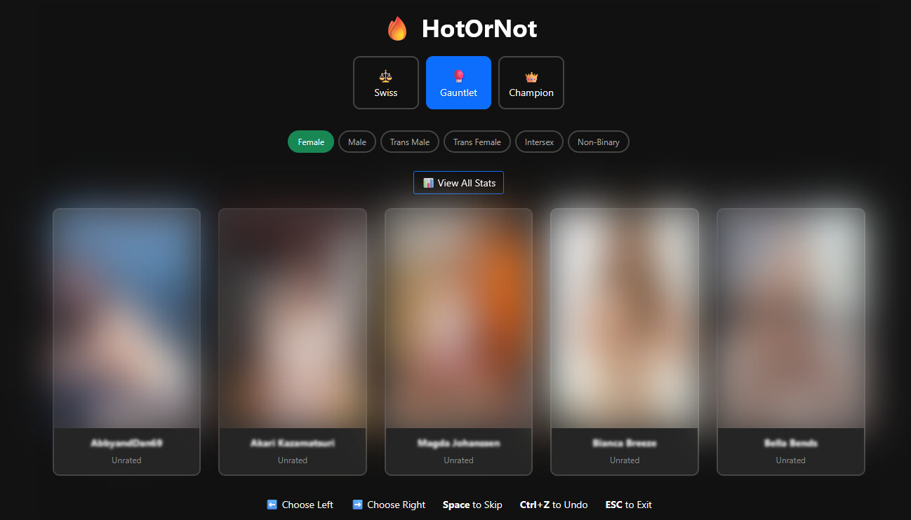 I’m going to run some tests by using your filter @bliks6 and see if I can replicate the behavior and pinpoint what’s going on. For the time being, you should be able to toggle the genders in the HotOrNot dashboard to properly pull up what you want to play.