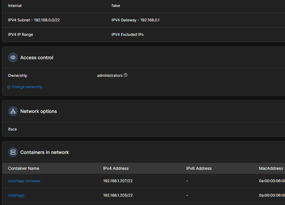 I have created a network that takes IP addresses from my local network (DHCP with IP reservation via MAC).