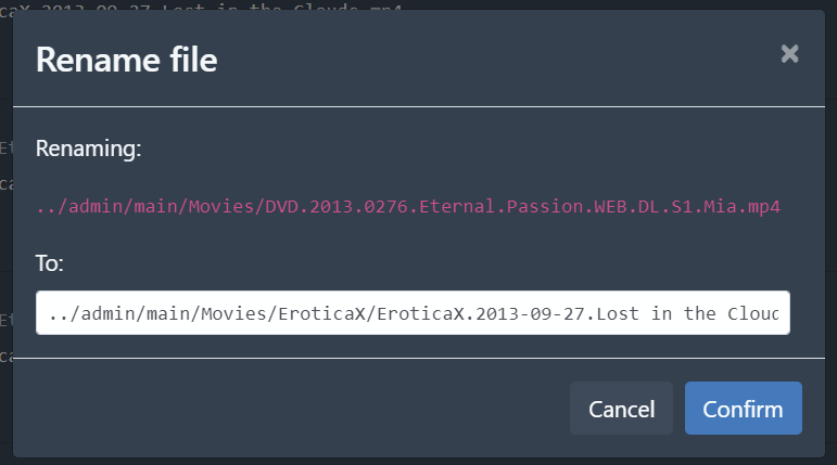 button renames the file. Edit brings up a dialog to edit the path before renaming: