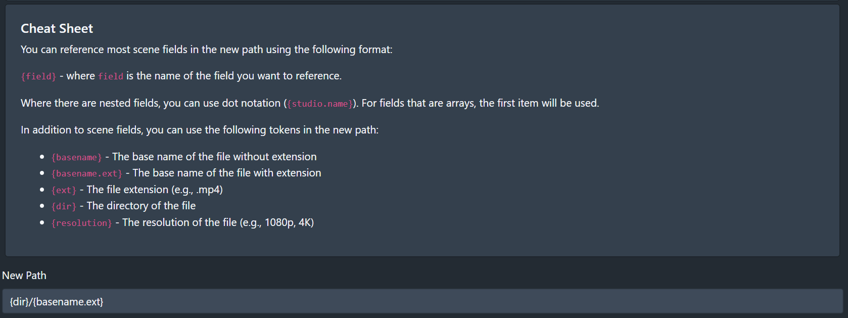 Then generates a new path/filename, which can then be applied or edited and renamed: