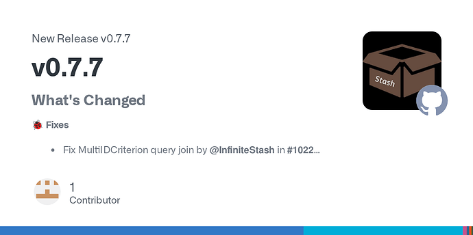 - Fix MultiIDCriterion query join by @InfiniteStash in Fix MultiIDCriterion query join by InfiniteStash · Pull Request #1022 · stashapp/stash-box · GitHub