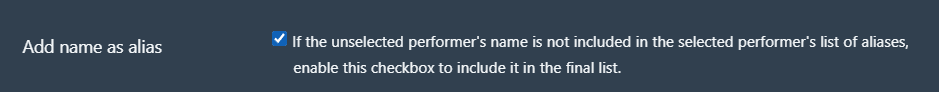 - Merge duplicate performers whilst selecting which data you want to keep from each.