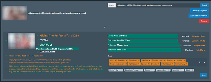 Example - Studio found, performers found, date found, 98% fingerprint match!