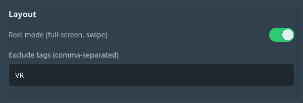 Such a cool plugin, thanks so much for all of the work youâve put in here! Are there any plans on the horizon to be able to exclude scenes with specific tags? I ask because Stash doesnât currently have an option to flatten VR generated previews so they have two copies of the video side-by-side and I would love to be able to exclude these videos from the StashGifs feed.