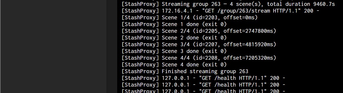 Multi-scene groups require StashProxy to stream correctly. Without it, only single-scene groups will play. See the StashProxy README for setup instructions.